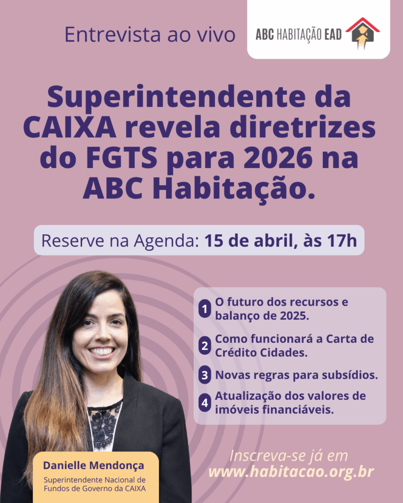 Para debater as normas e o cenário que nortearão o setor nos próximos meses, a ABC Habitação promove uma entrevista exclusiva e ao vivo com a Diretora de Fundos de Governo da Caixa Econômica Federal, Danielle Mendonça.